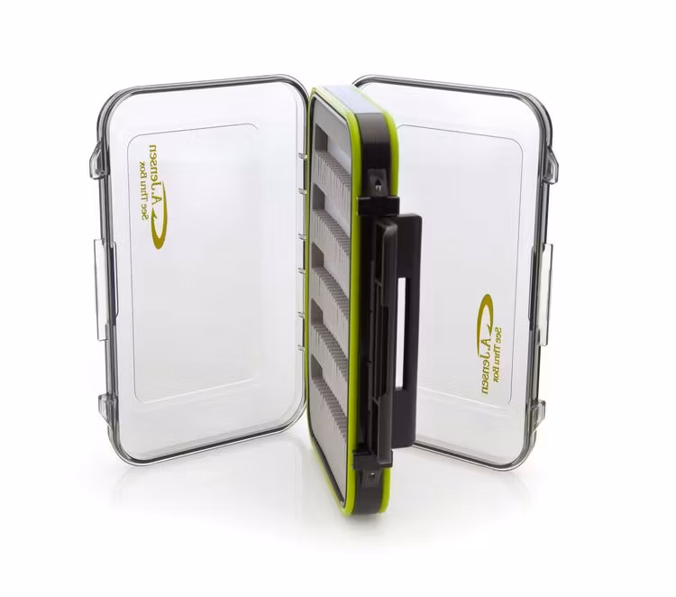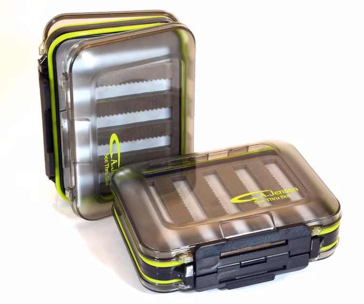 Det här är en riktigt tålig och vattentät ask från A Jensen. Genomskinliga lock så att du direkt ser om du valt rätt ask och vilka flugor du kan välja.